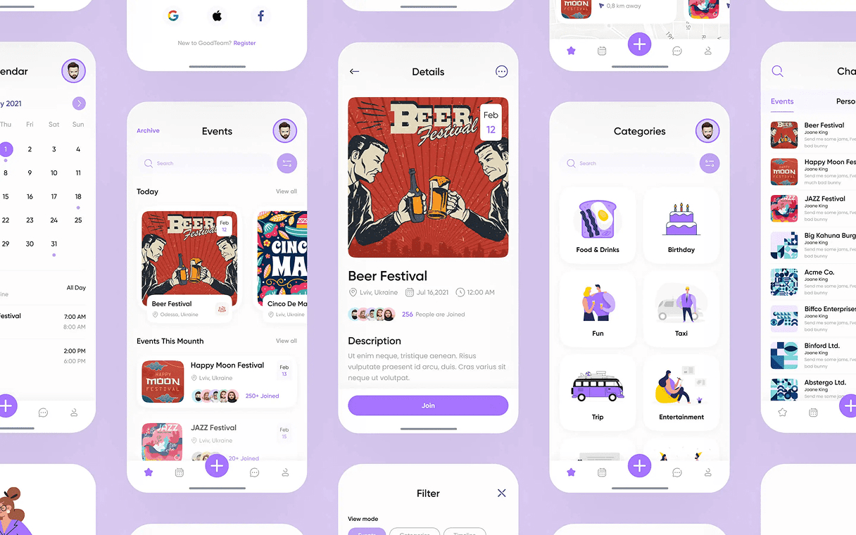 The main idea of the GoodTeam application was to develop an application for creating events and various corporate meetings, as well as for the team to be able to easily participate in these events. The application had to be easy to use and with a good UI part